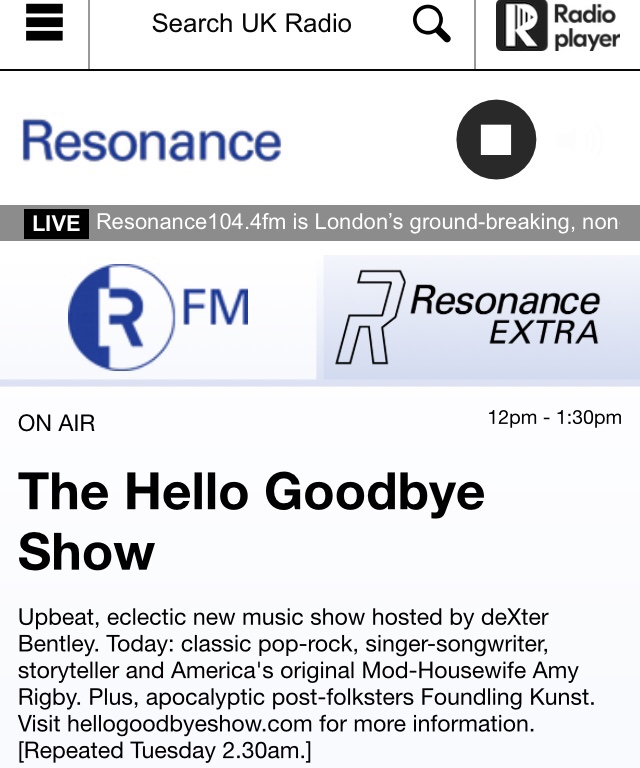 On Saturday 11th April 2020 Resonance FM’s Hello GoodBye Show included features with Amy Rigby and Foundling Kunst.