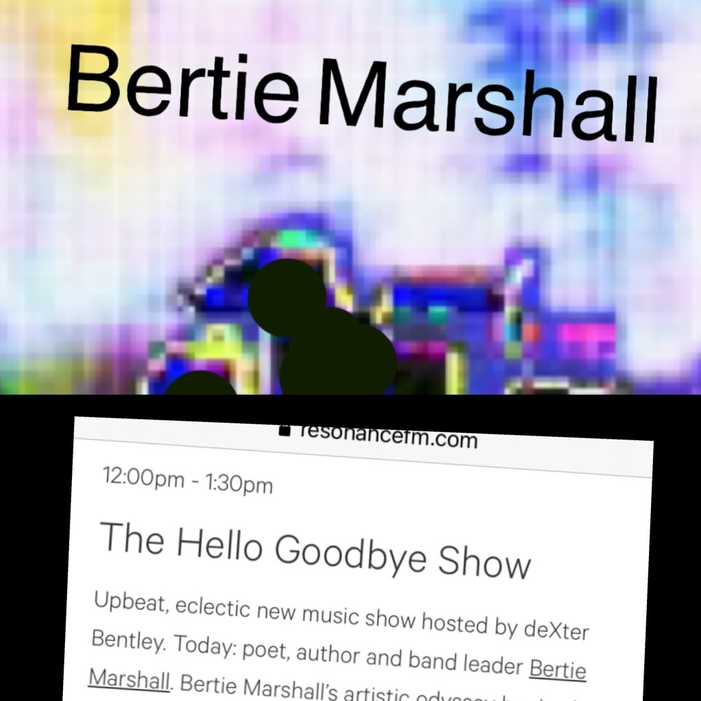 On Saturday 6th November 2021 Resonance FM’s Hello GoodBye Show included a special feature on the poet, author and bandleader Bertie Marshall.